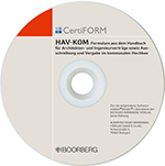 CertiFORM HAV-KOM bietet auf sechs voneinander unabhängigen CD-ROMs maßgeschneiderte elektronische Vertrags- und Formularmodule aus dem »HAV-KOM – Handbuch für Architekten- und Ingenieurverträge, sowie für Ausschreibung und Vergabe im kommunalen Hochbau«. Die Verträge und weiteren Vordrucke können komfortabel direkt am PC ausgefüllt und in beliebiger Anzahl ausgedruckt werden. Außerdem können alle Formulare unmittelbar aus dem Programm heraus als PDF ausgegeben und zum Beispiel im Rahmen von Ausschreibungsverfahren in E-Mails eingebunden werden. CertiFORM »HAV-KOM 5« enthält: - Kommunale Formblätter für Ausschreibung und Vergabe (KFB) Systemvoraussetzungen: CertiFORM elektronische Formularsoftware läuft auf allen Standard-PCs mit Windows 7, Windows 8, Windows 8.1, Windows 10 und Windows 11 (32-Bit- und 64-Bit-Version). CD-ROM mit kostenpflichtigen Updates; Bezugsverpflichtung: 1 Kalenderjahr. Die Kündigungsfrist beträgt einen Monat zum Jahresende. Nach Ablauf der Jahresfrist ist die Kündigung jederzeit mit einer Frist von einem Monat möglich. |